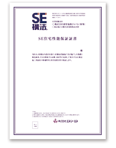 すべての住宅を構造計算しているSE構法は、それぞれ1軒1軒の構造性能を表示することができるので、規定の構造検査に合格した物件に対してSE構法性能報告書を提出しています。この中では、建物の層間変形角や偏心率、剛性率といった、 一般木造住宅では表示することのできない構造性能も明確に表示されています。また長期優良住宅認定のポイントとなる「住宅の性能」「維持保全計画」ともに、SE構法が当初より重視し、実現してきた思想そのものです。住宅のあるべき姿を追求してきたSE構法は、まさに長期優良住宅のパイオニア的な存在。これから長期優良住宅をお考えの皆さまにも最適の選択肢であると、自信を持ってお勧めいたします。