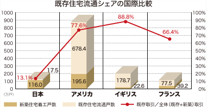 日本:住宅・土地統計調査(平成15年・総務省)、住宅着工統計(平成15年・国土交通省)
